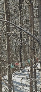 The solstice also brings a plane landing into the -14 winter evening. On it, our elder son and his fiance. Vancouver kids shivering in the cold. Life in the house doubles. That night, wolves howl nearby. It feels like a sign, a return of life and light. The next day, -20, we climb the hill and look for tracks. We don’t find them but we relish the sunlight as we look across the valley, its murky air.