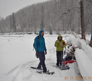 We found a pleasant route through Walter Faeh’s property down to the Bulkley and downstream to the confluence. We repeated this trip many times over the last couple of years. We tried to follow the creek up to the rockfall, but kept getting blocked by seriously precipitous canyons, the conditions never quite right on foot or snowshoe to persevere.