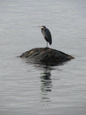 Just past the end of the sea walk, dozens of surf scoters, in close. Their exotic beaks, clear identifiers. Over toward Texada, a touch of mist. The water was so calm, so grey, the more distant birds seemed to float above it. They were there. And then they weren’t.