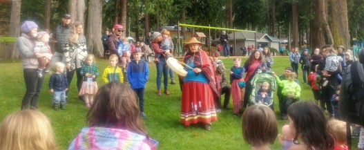 At Willingdon Beach, Rose Henry began by gathering the children around her to sing a song honouring them as ancestors, explaining that the Tla’amin believe (as do the Witsuwit’en) that children are their elders come back.