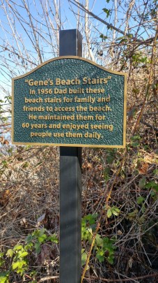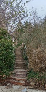 I had it in my head that going barefoot was a sign of spiritual intelligence – if you wear shoes the whole world is made of leather. I’d walk on the hot pavement to toughen them up and then along the beach home. But I don’t remember where I dropped down from Marine. I can’t see my feet. I can’t remember stairs. The last year of high school, I was the only kid left at home. Grief Point with only a few houses. So many memories gone. That’s why I walk these stairways now. Happy to trace the paths that carry memories for others, many of them folks I went to school with.