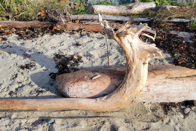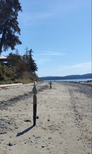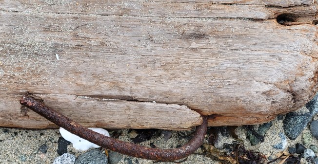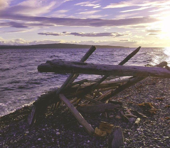 Perhaps I should clarify here that it was my mom’s family, weaned on North Sea beaches, that made the summer evening trips down the terraced streets of Powell River to the beach. Since we lived farthest away, my mom would begin the walk with just the three of us kids in tow. On the way down towards the water we would pick up Granny, and sometimes Grandpa, and then join our aunt and her three children at the beach just below her house. But the sons-in-law, men who worked outside on log booms summer and winter, day shift and night shift, were intent on keeping their bodies out of the salt chuck; it would take more than a warm, idle summer evening to re-route those neural paths.