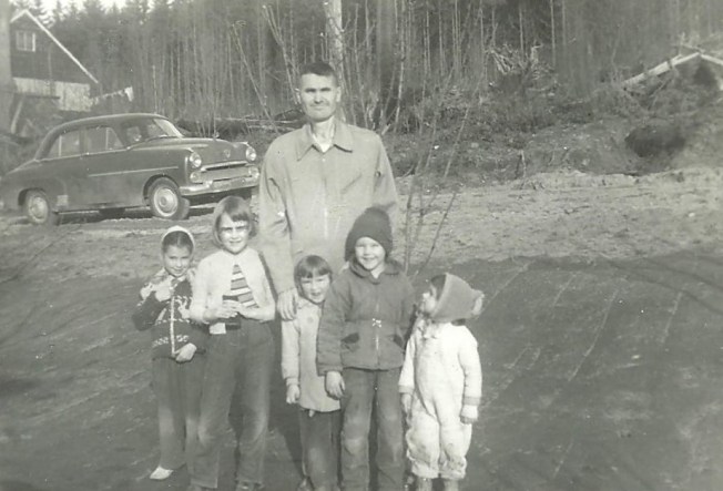 Flanked by the curving arms of that forest above our house, we could look through the big window above the kitchen table down toward the square kilometre of our whole world: the corner store (Fairweather’s), elementary school (J.P. Dallos), church (Westview United), our grandparents’ place (Omineca Avenue) and a quick scoot down past the bowling alley and the Westview Hotel to my aunt, uncle and cousins’ house right above the harbour. We didn’t own a car until 1960.