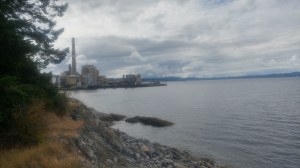 In October, we decided to walk the whole trail. By this time we’d read about the Tla’amin village, Tees Kwat, that had been at the outlet of Powell River. The municipal plan, showing admirable concern for a more robust history, tells how it was destroyed (I’ve condensed it below):
